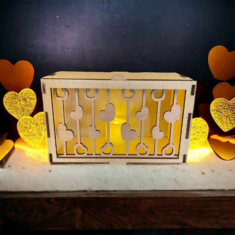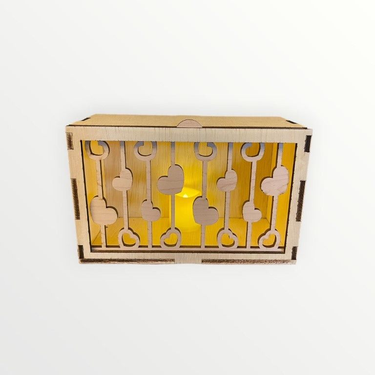 Add a touch of warmth and whimsy to your home with our Heart Strings Horizontal Face for the Rustic Radiance lantern. This wooden lantern face features multiple hearts hanging from strings, perfectly lit by the included LED votive candle. Spread the love with this unique and playful addition to your decor.