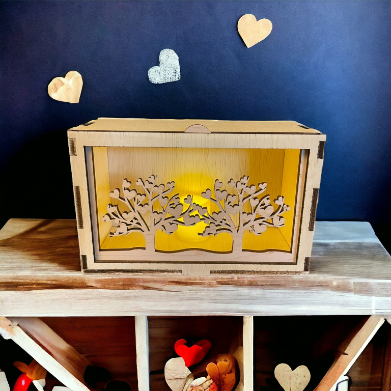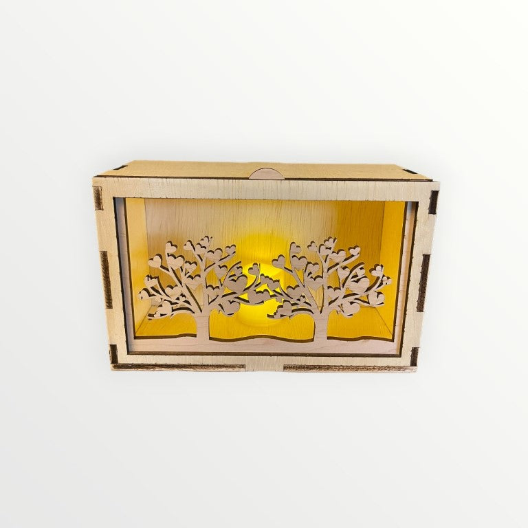 Set your heart aglow with our Hearts In Bloom Horizontal Face! Simply place this wooden lantern face on our Rustic Radiance lantern and light up the hearts with our LED votive candle. The blooming heart trees will add a touch of whimsy to any room.