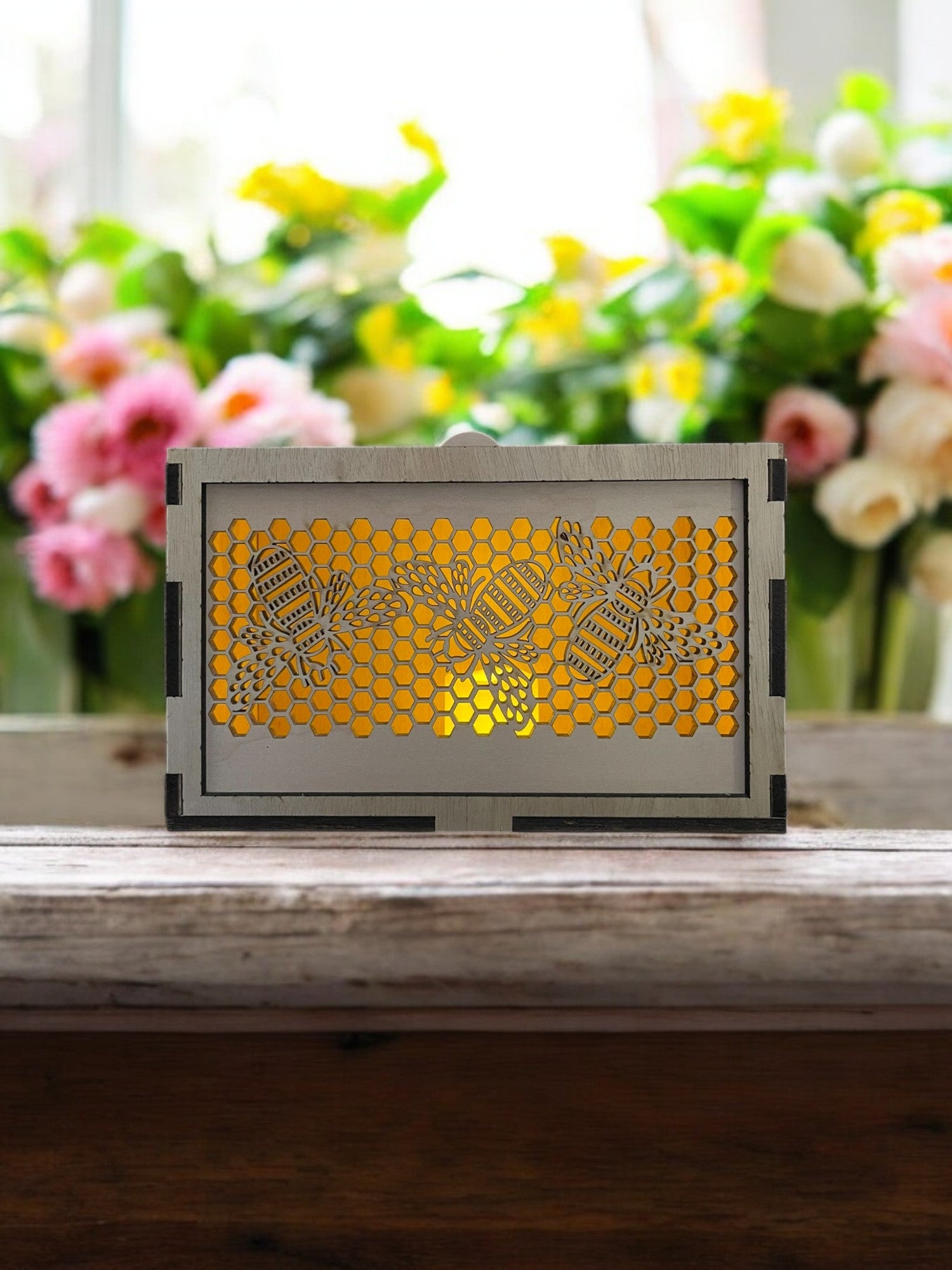 Light up your home with these adorable Honeybees - Horizontal Face lanterns. Featuring a spring theme and honeycomb design, these wooden lanterns are perfect for adding a touch of whimsy to your home decor. And with LED lights, your space will be filled with a warm glow. Buzz-worthy!